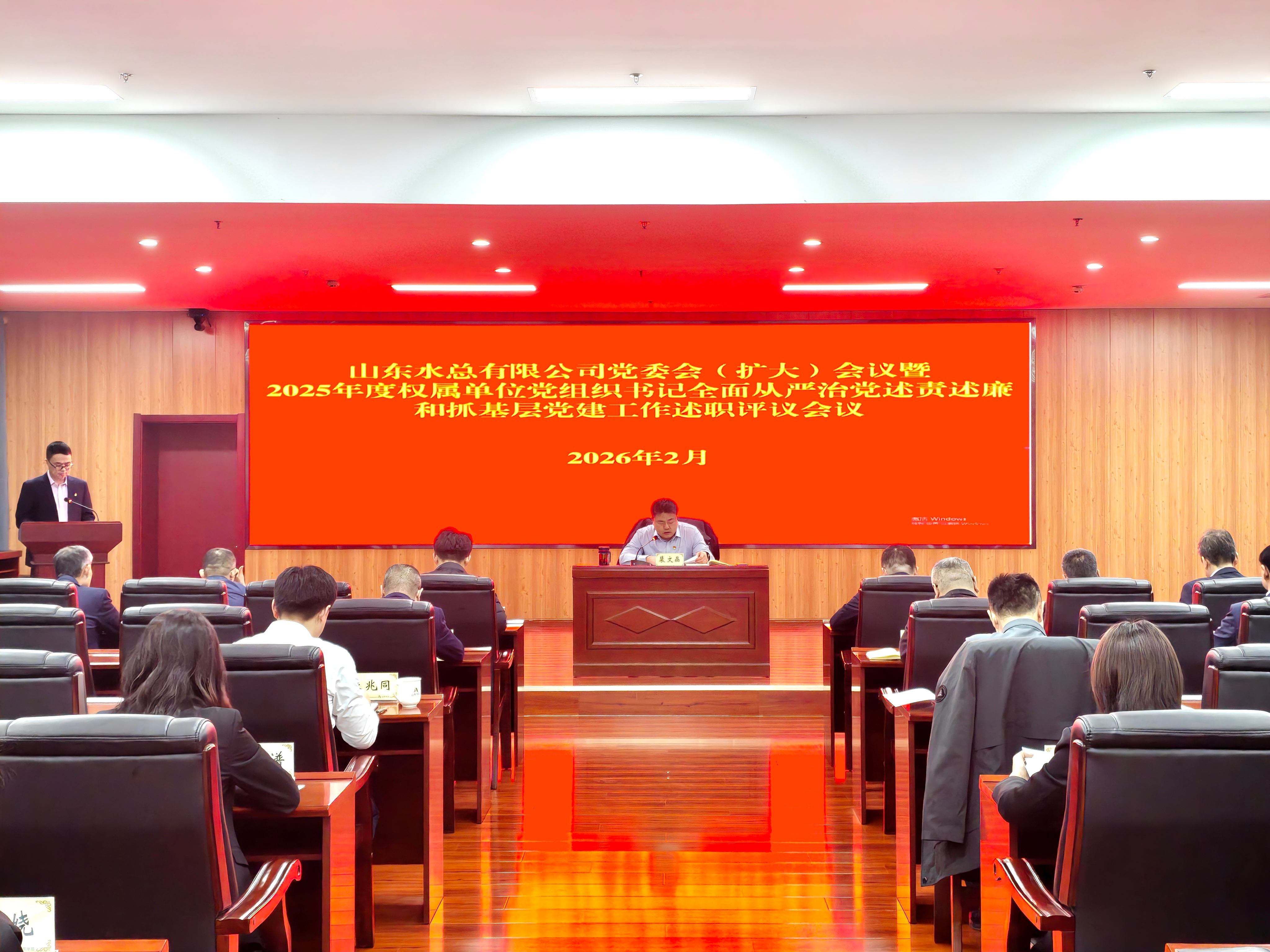 2月5日,山东水总有限公司党委召开扩大会议,分别听取权属单位党支部书记2025年度全面从严治党述责述廉和抓基层党建工作述职,并组织开展评议。公司党委书记、董事长裴文晶主持会议并讲话,集团公司党委组织部派员到会指导。